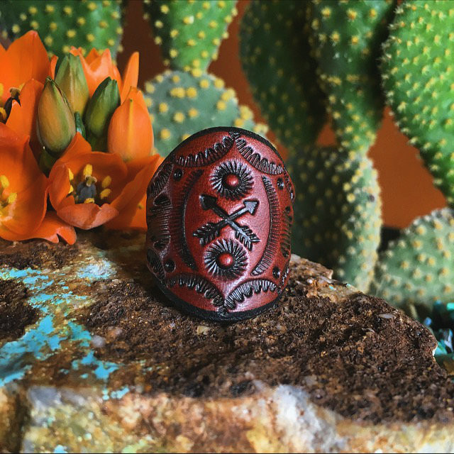 All rings are made of the highest quality of veg tanned leather. The leather is very soft and supple to make for a comfortable fit.